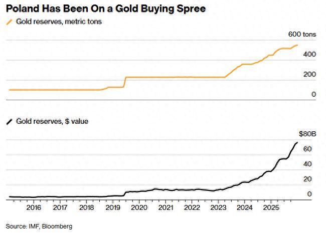 智通财经APP获悉信康配资,波兰央行周二表示,该行已批准一项购买多达150吨黄金的计划,这将使该国的黄金储备总量增至700吨。按当前市场价格计算,拟议中的采购金额接近230亿美元。值得一提的是,波兰央行已在2025年购买了约100吨黄金,数量超过任何一家向国际货币基金组织(IMF)申报其购金情况的其他央行。