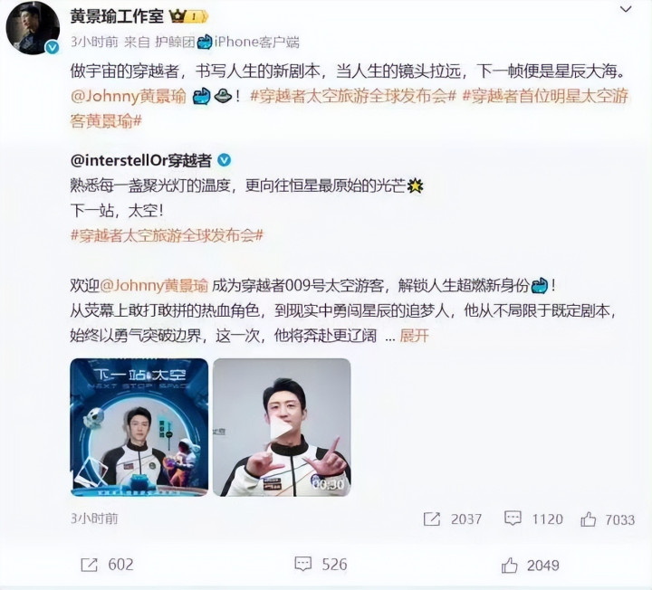 黄景瑜要上太空了。不是拍电影天诚配资,是真的买票坐飞船。这事昨天一出,直接炸了锅。